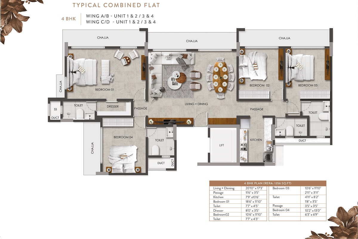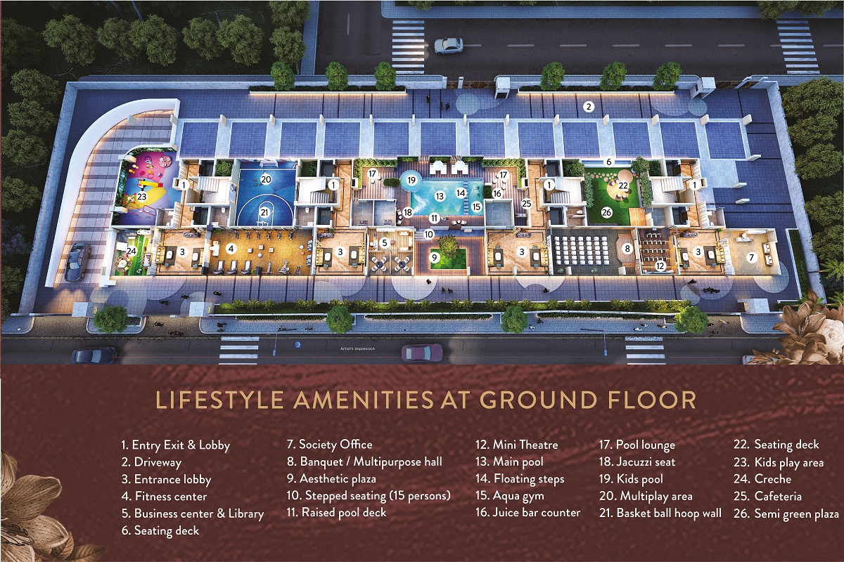The plan, layout plans, the number of towers/proposed towers, specifications, amenities, images and visuals, drawings plans or sketches and other details shown in this promotional document are only indicative and the promoter reserves the right to change any or all of these in the interest of the project as per applicable laws, rules and regulations. No representation or warranty is made or intended as to the accuracy or completeness of information and no commitments are being given under this promotional document or as to its suitability or adequacy for any purpose or otherwise howsoever, that the completed project will comply in any degree with such artist's impression as depicted. The promotional document does not constitute an offer and/or contract of any type between the promoter and the allottee/s. All apartments allotted shall be governed by the terms & conditions of the Agreement for Sale entered/to be entered into between promoter and allottee/s alongwith approved plans and no details mentioned in this promotional document shall in any way govern any such transaction. T&C Apply.
